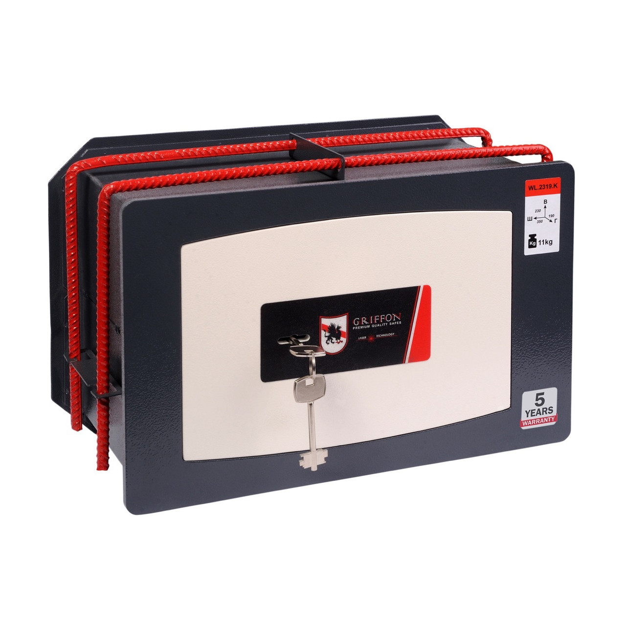 Вбудовувані сейфи серії WL – Wall Light кріпляться в стіну за допомогою спеціальної арматури, а загальна товщина дверей прирівнюється до 8 мм. Сейф оснащений двома надійними активними ригелями, ключовим сувальдним замком або електронним кодовим замком. Ще одна зручна функція моделі – внутрішня з’ємна полиця, що розділяє сейф горизонтально на два відділи. Вбудовувані сейфи від ТМ Griffon підходять як для офісних, так і приватних приміщень.